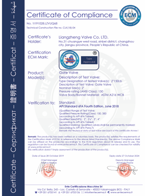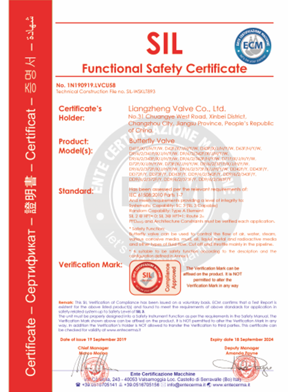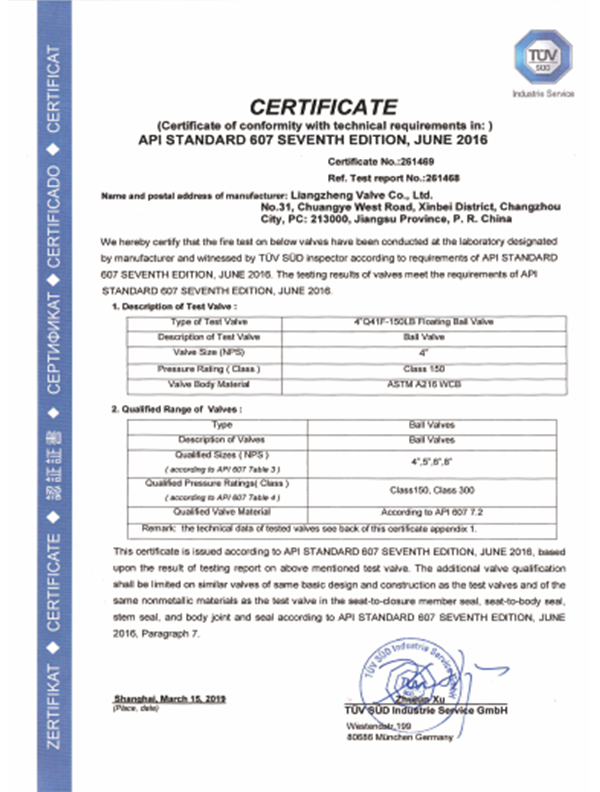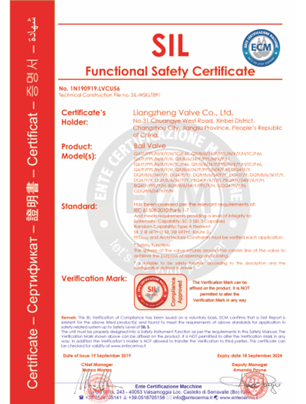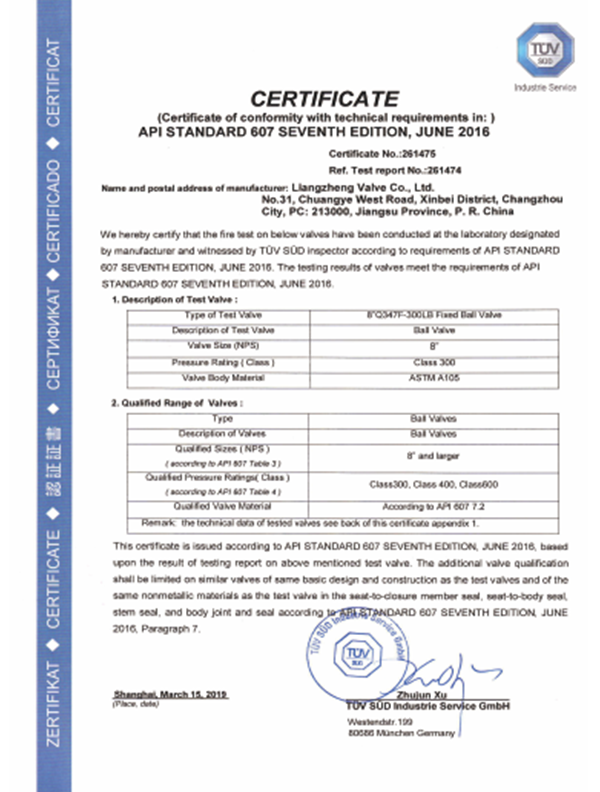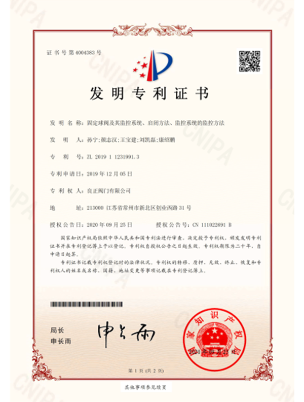 良正閥門均通過了”TS”特種設備制造許可A級認證,API6D美國石油協會認證,ISO9001國際質量體系認證,ISO14001環境體系認證,ISO45001職業健康安全管理體系認證,德國南德TUV頒發的API607防火認證,SIL3安全評估證書,CE歐盟證書,兩化融合證書,知識產權貫標證書,AA計量、AAA測量體系等證書。